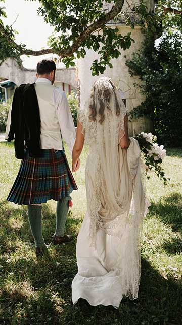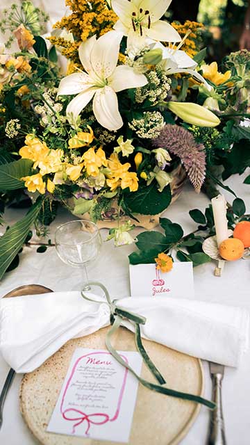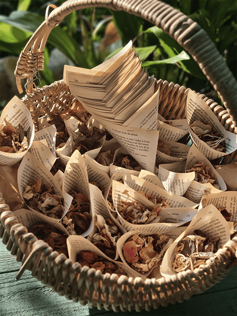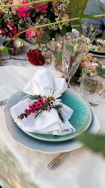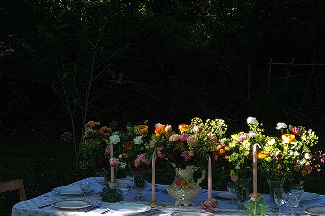 J'aime les décors authentiques inspirés de la nature ; la poésie d'une branche qui s'entortille, des bouquets flous en mouvement. Je passe énormément de temps à glaner des végétaux dans la campagne du pays basque pour obtenir un rendu élégant et sauvage.